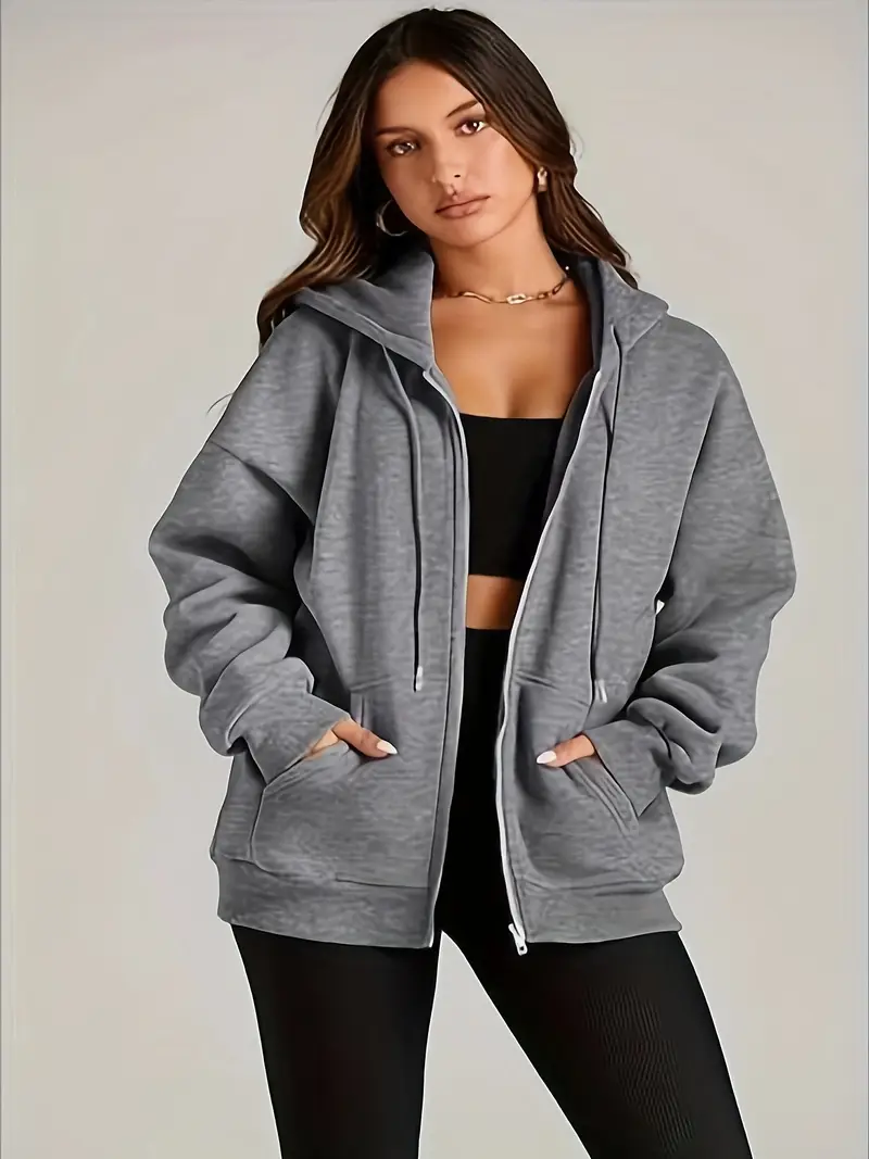 Accmetees Womens Hooded Sweatshirt with Zip, Full Sleeve, Zipper Hoodie with Kangaroo Pocket