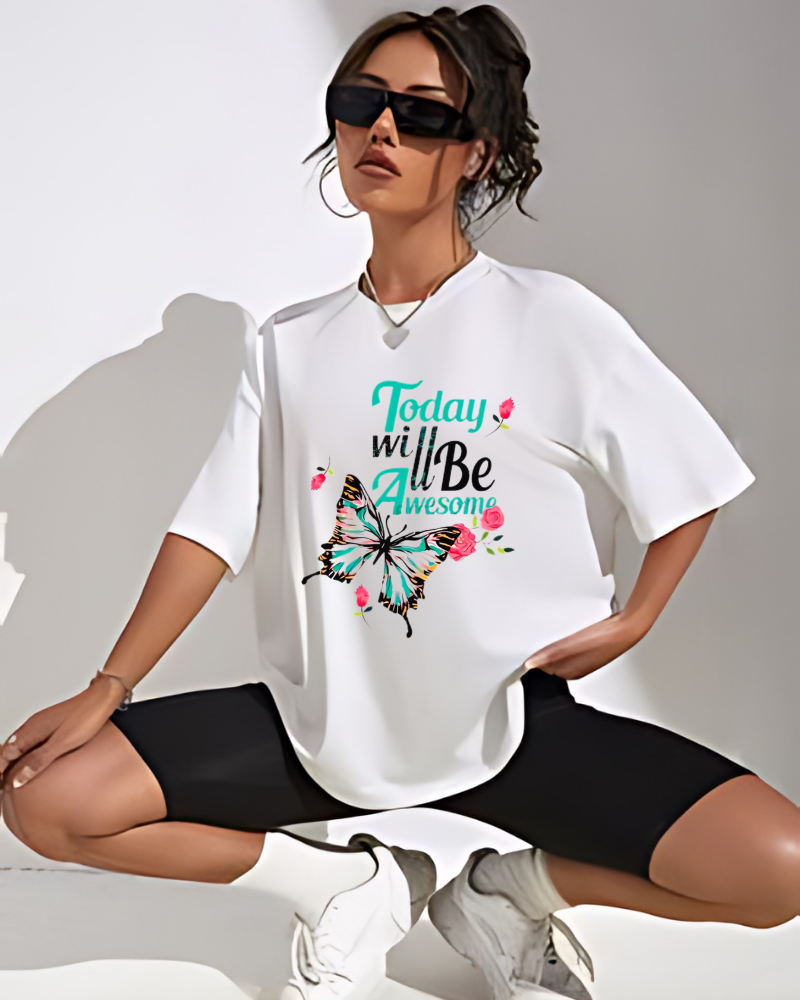 Oversize Printed T-Shirt for Women , Digital Printed , Round neck , Half sleeve
