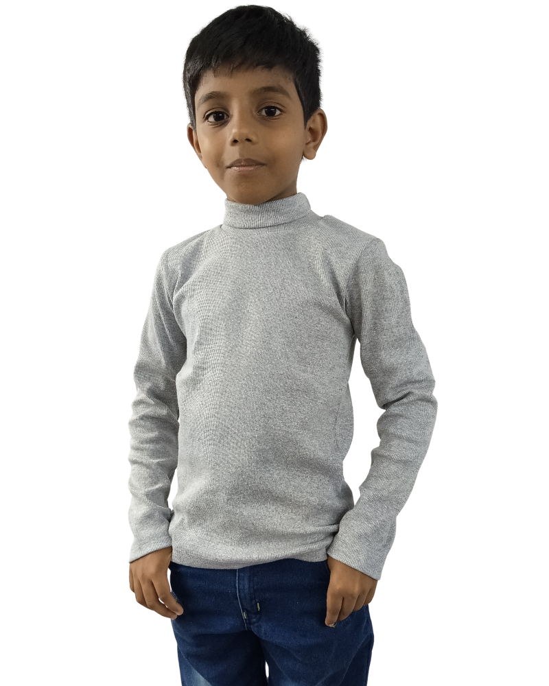 Accmetees Boys Turtle Neck T Shirt | Full Sleeve High Neck Winter Wear | Plain Cotton Stretchable Solid Tee for Kids